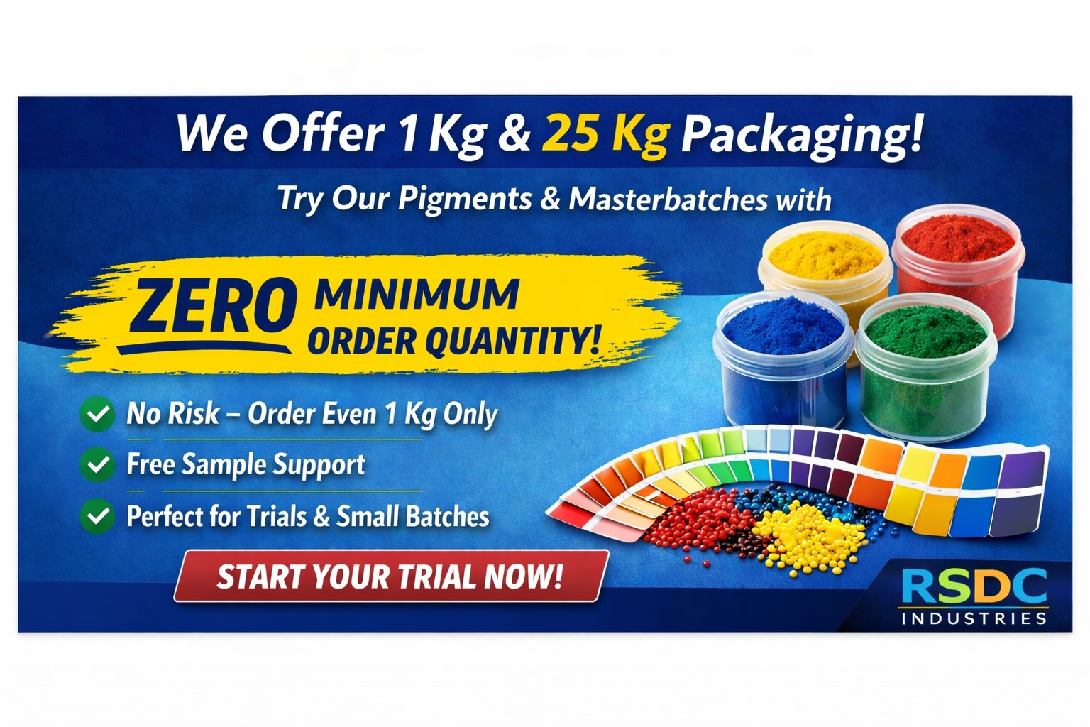 RSDC industries Pvt Ltd is specialized in organic & inorganic pigments for over more than 10 years and has acquired a strong position especially in the colour business in India. With considerable market share. We are one of the major pigment supplier, among both Indian and MNC’s.